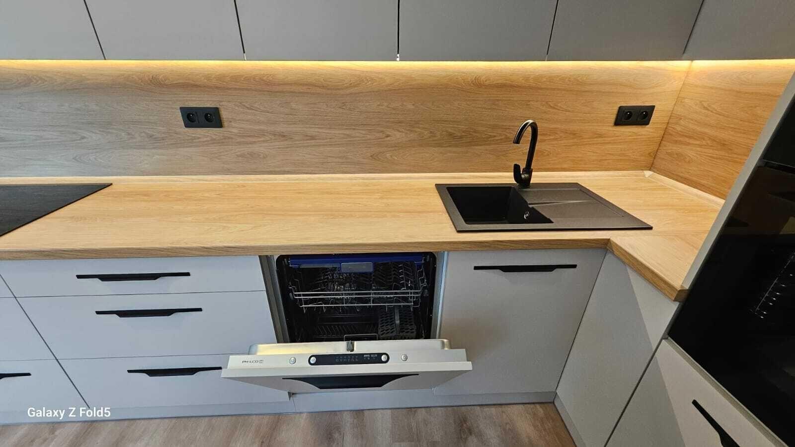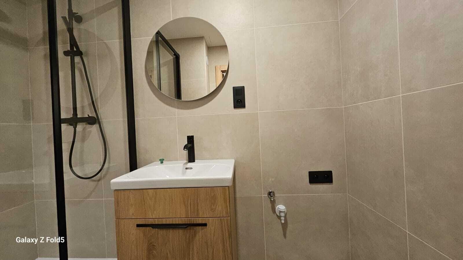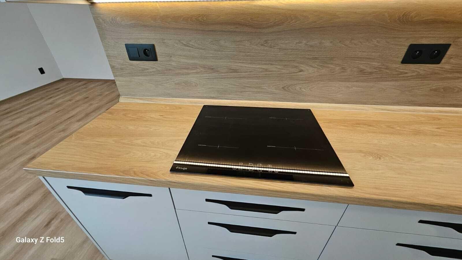 V bytě je vše nové, nové podlahy, nová koupelna, nová kuchyňská linka, nová světla, vypínače, bezfalcové dveře s obložkami. Celý interiér je sladěný do nejmenšího detailu a zároveň každý detail je důležitý. Bezesporu největší dominantou bytu je kuchyňská linka s vestavěnými spotřebiči a vestavěná šatní skříň v chodbě. Vše bylo vyrobeno na míru pro tuto bytovou jednotku.